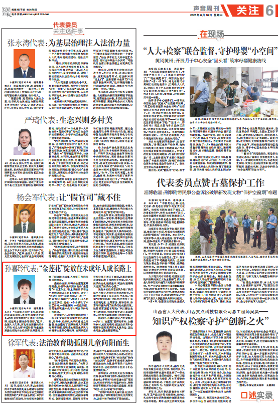 该院未检检察官安琪介绍:“我们每个月都会进学校开展法治教育,目前已经覆盖了全县23所中小学。”得知“检察官妈妈”团队结对帮扶了16名困境儿童,定期家访、辅导功课,孙喜玲特意询问了孩子们的成长情况。她翻看家访记录时说:“从以前怯生生不敢说话,到现在能主动分享成绩单,这些细节最能说明工作有价值。”